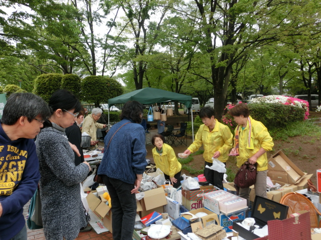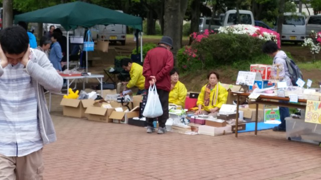 天候は早朝から霧雨がパラツキ、どうなるかと不安な立ち上がりでしたが、9時過ぎには雨も上がり日差しこそないものの、程よい暖かさに恵まれバザー日和の一日でした。