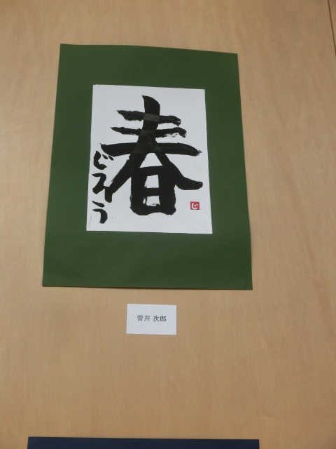 書道部門では、菅井次郎君(その他作業所)の見事に力強い「春」の一文字でした。